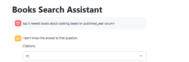 Once the chat history has been set up, the app can track the conversation and deliver more relevant answers. For example, when asking for the “Top 5 books” followed by a request for “1 more,” the app correctly interprets the second query as a continuation of the first, returning an additional, sixth book: